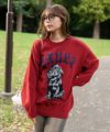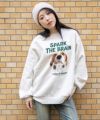 《犬プリント×立体ロゴ刺繍》レディース 裏起毛 スウェット トレーナー カジュアル 秋冬