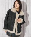《フェイクレザー×ファー切替》レディース ボタン留め ミドル丈ブルゾン アウター 秋冬