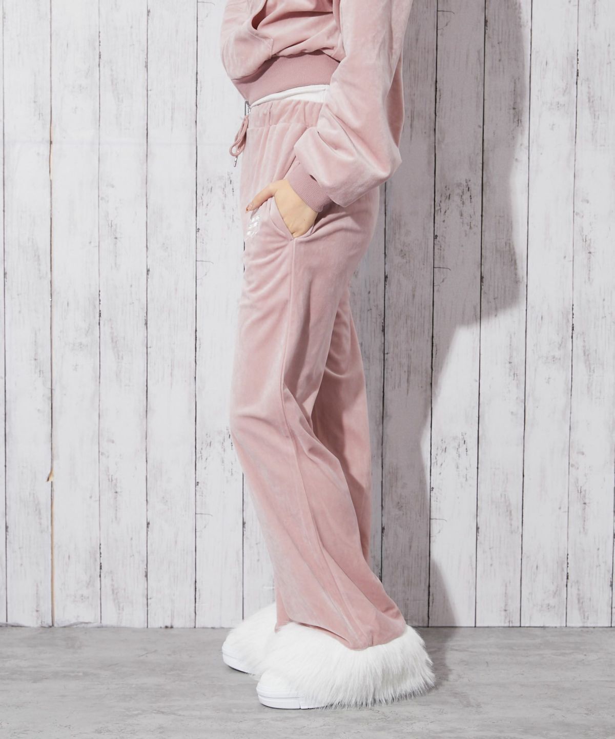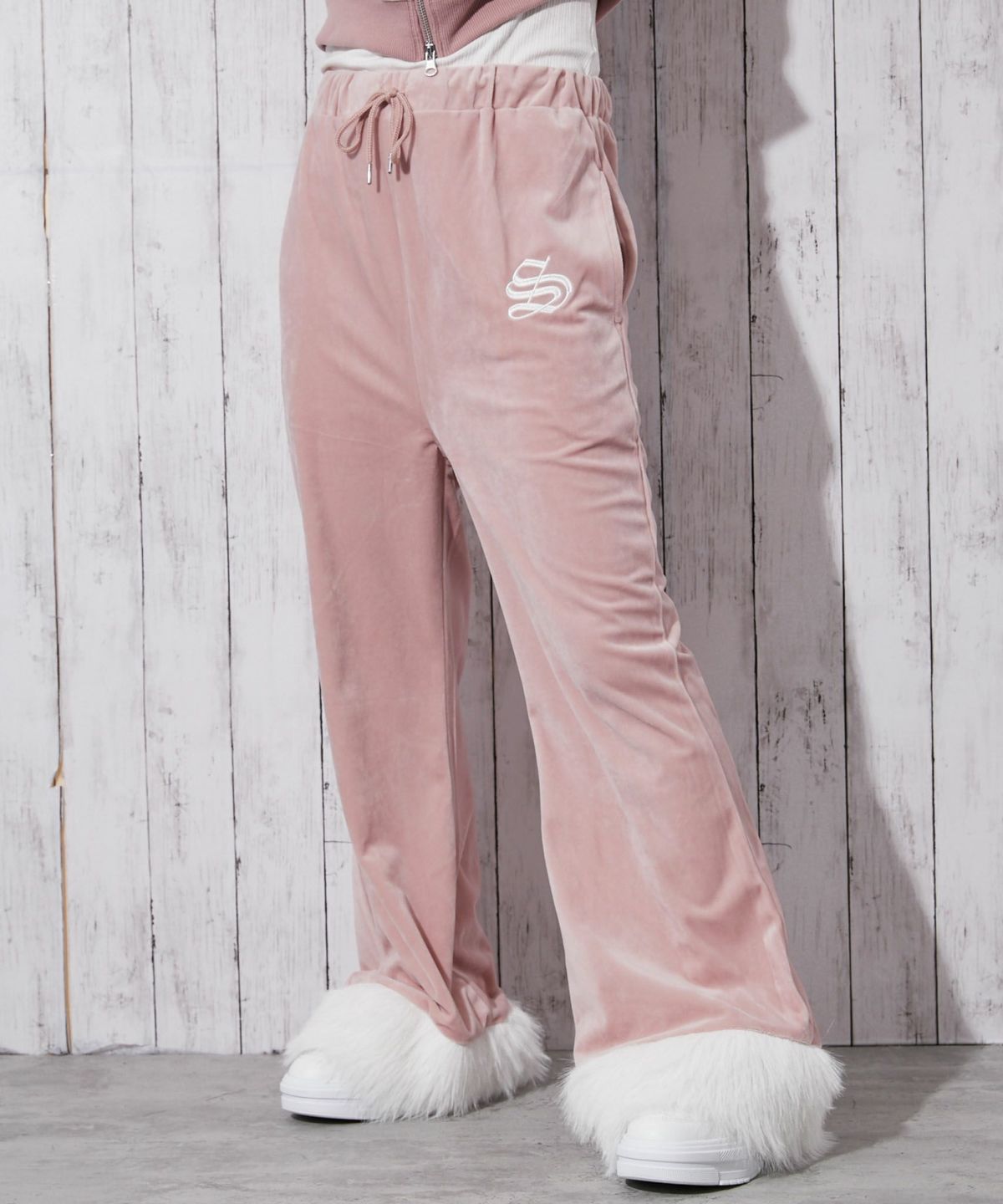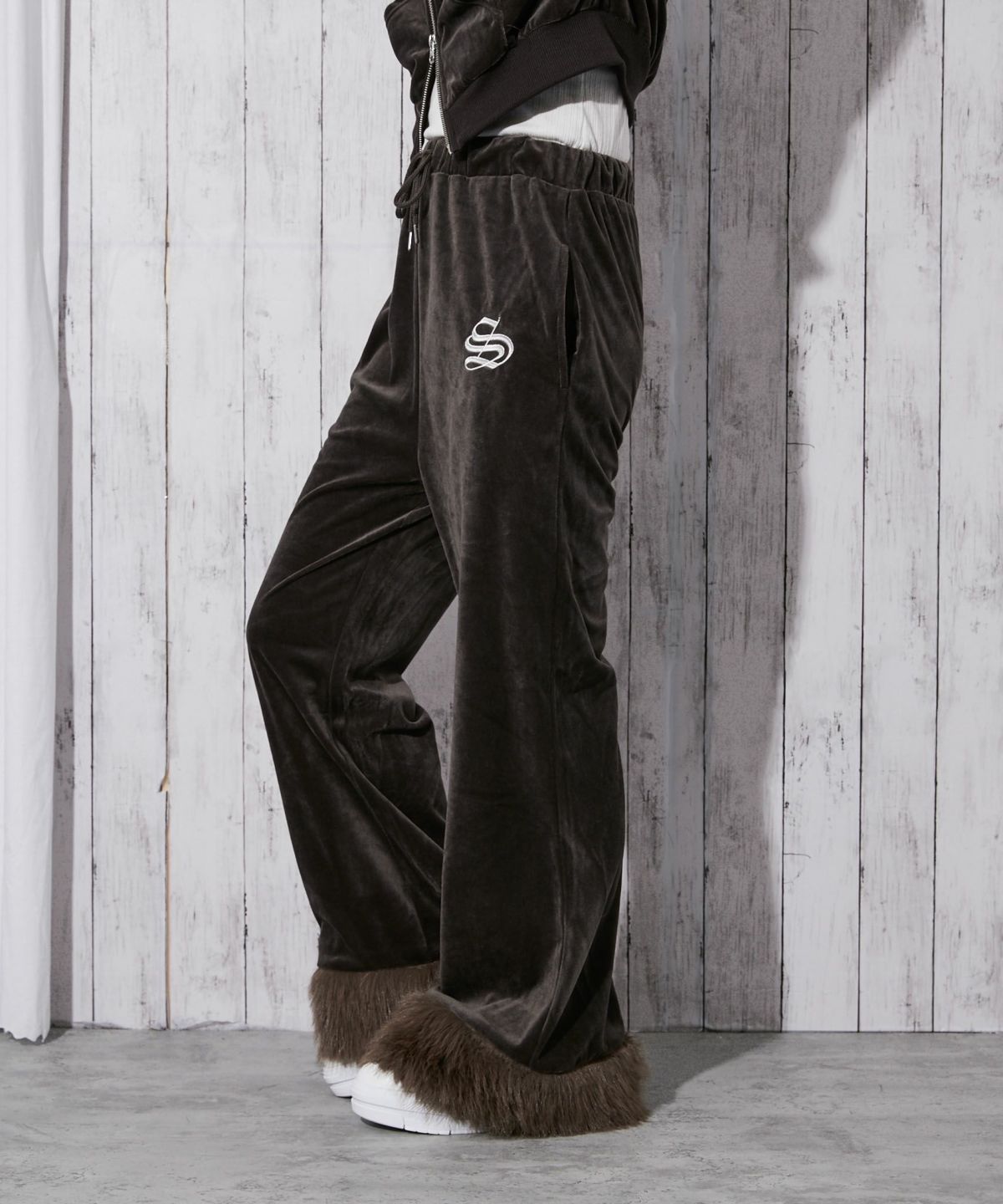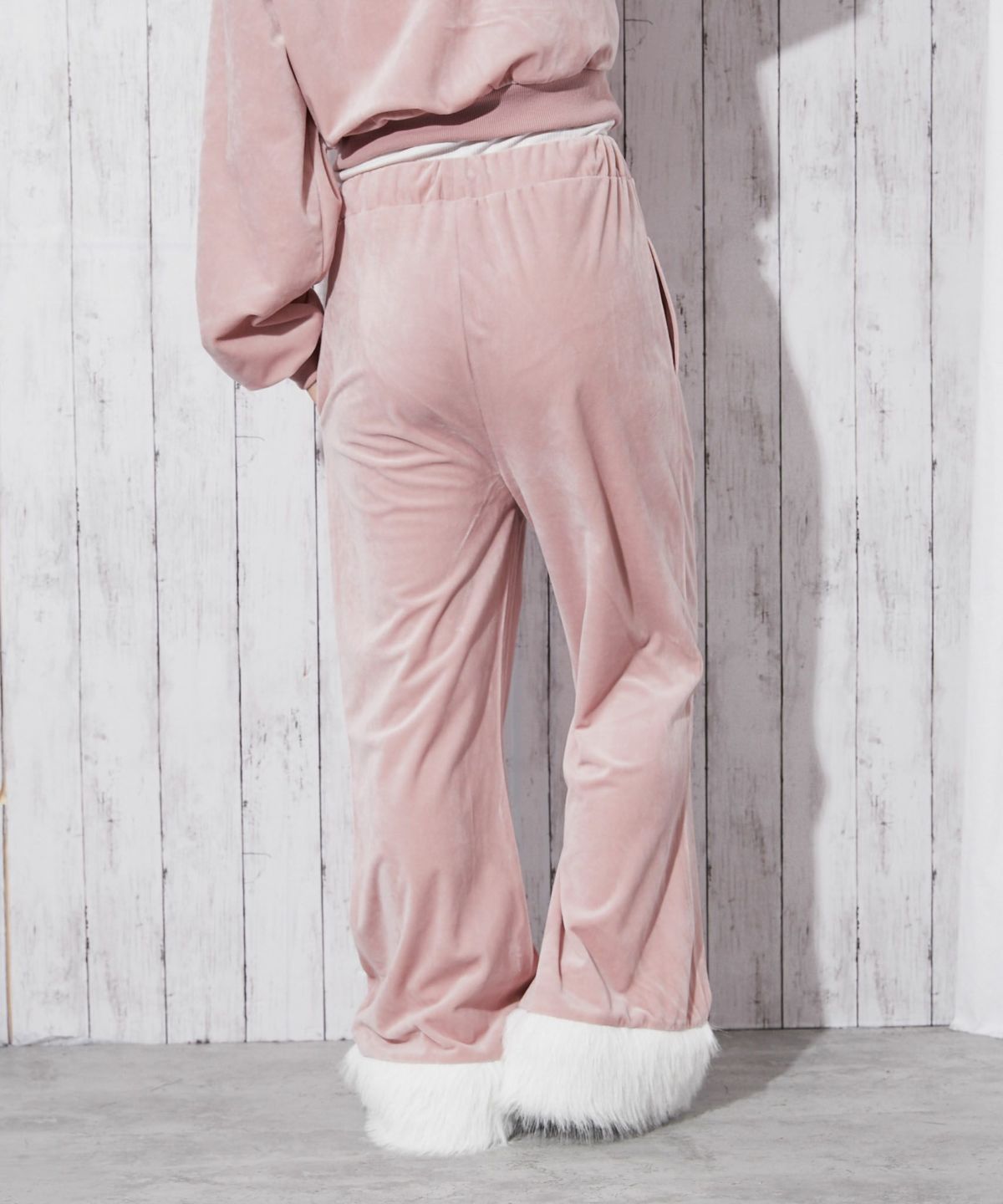 《裾ファー×ベロア素材》レディース フレアパンツ セットアップ対応 秋冬