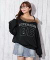 《ネックファー×ラインストーンロゴ》レディース 裏起毛 スウェット プルオーバー オフショル風 秋冬