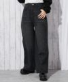 《ラメ飛ばしデニム》レディース ストレートパンツ ノンストレッチ クール見え 秋冬