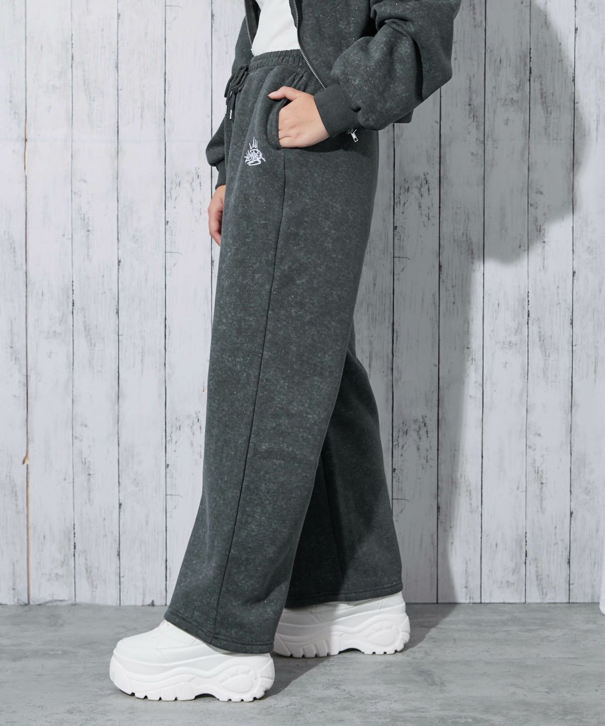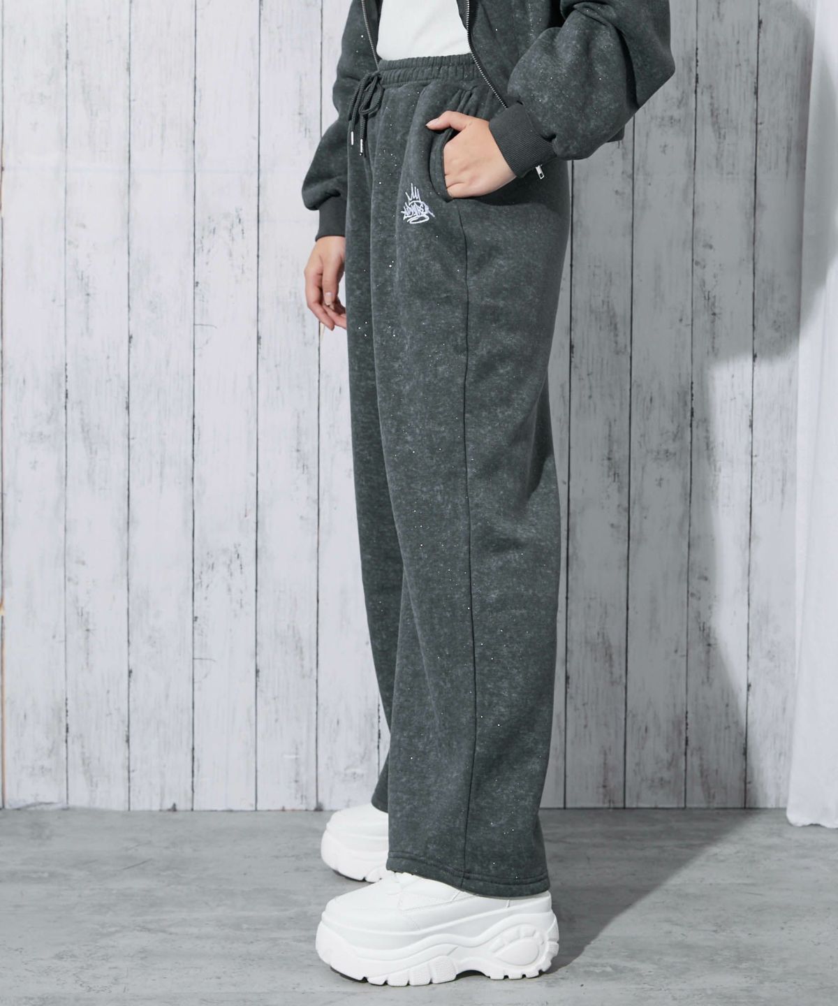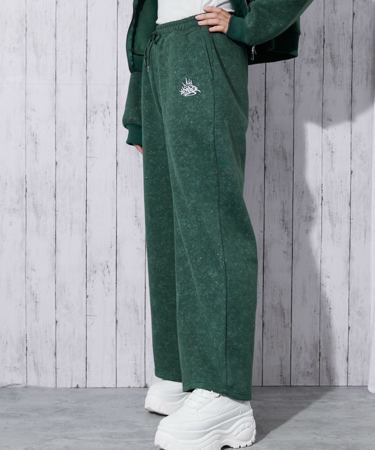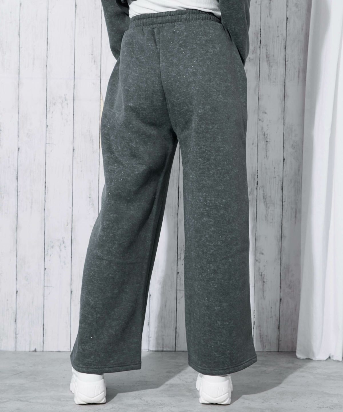 《ラメきらっと》裏起毛 ワイドスウェットパンツ 体型カバー 楽ちん 春秋冬