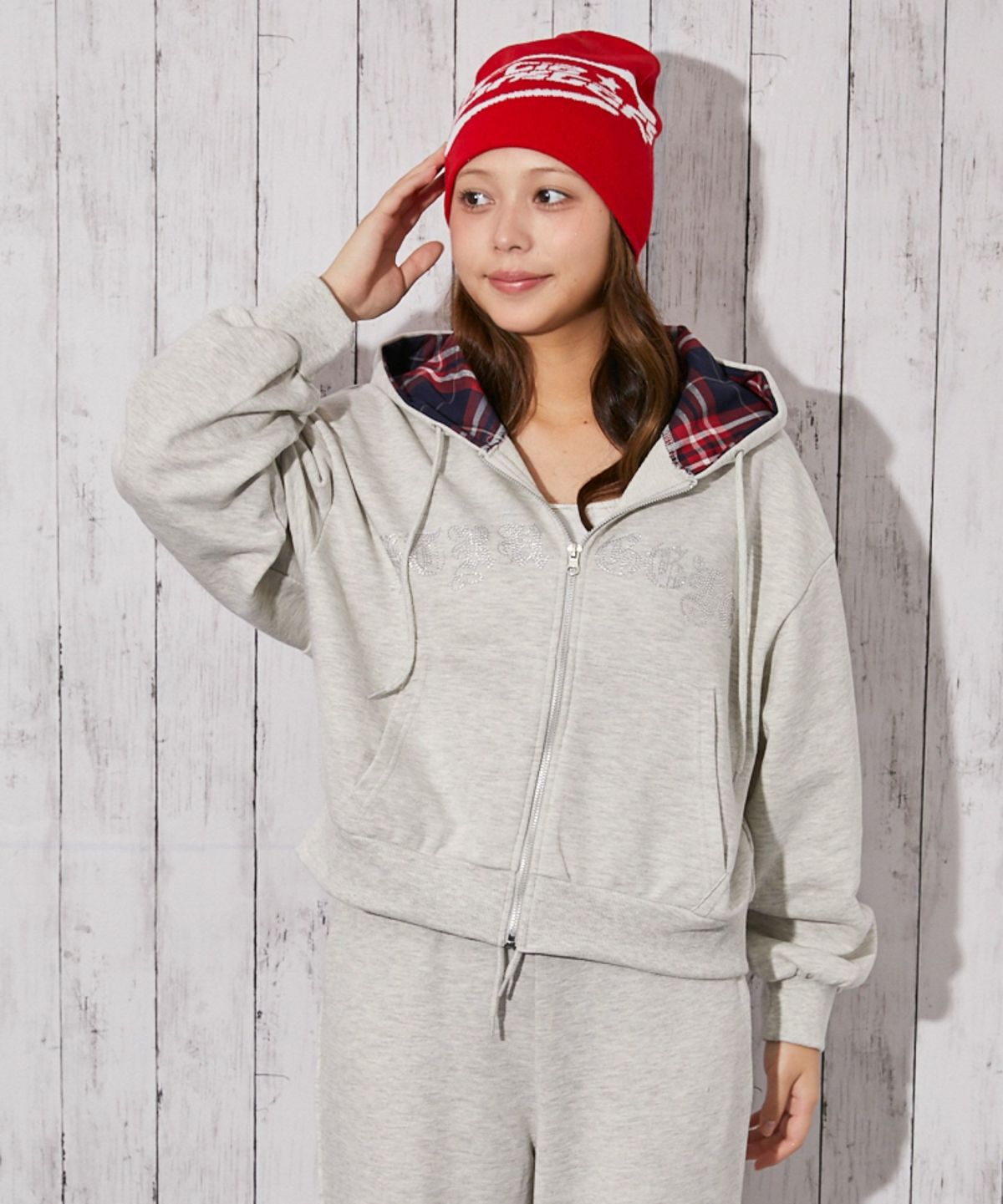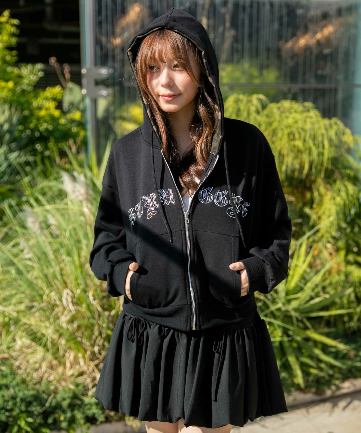 他の画像を見る 《裏地柄フード×キラキラロゴ》ショート丈ジップパーカー NEW 2BUY10%OFF 定価 ¥ 6,589 のところ SALE価格 ¥ 3,294 税込 カートに入れる お気に入りに登録する
