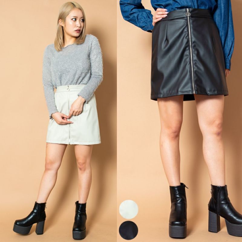 フロントジップのアクセントが可愛いエコレザーミニスカートの登場★