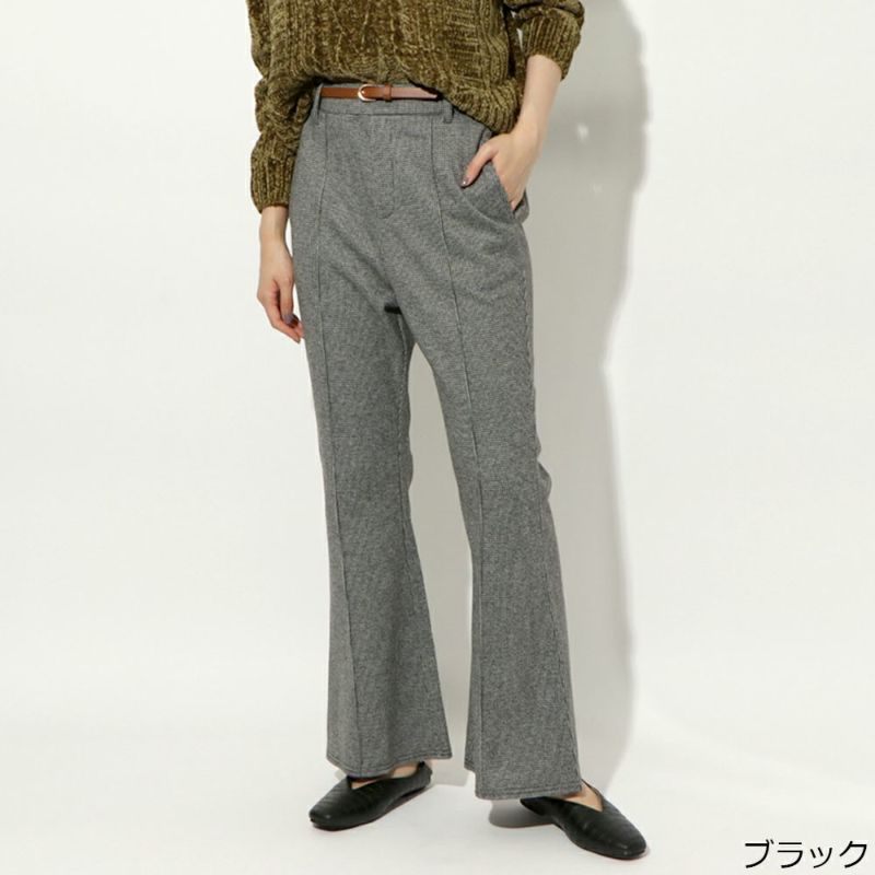 ベルト付 チェック パンツ チェック柄 起毛 フレア ピンタック SET 秋 冬 2131638