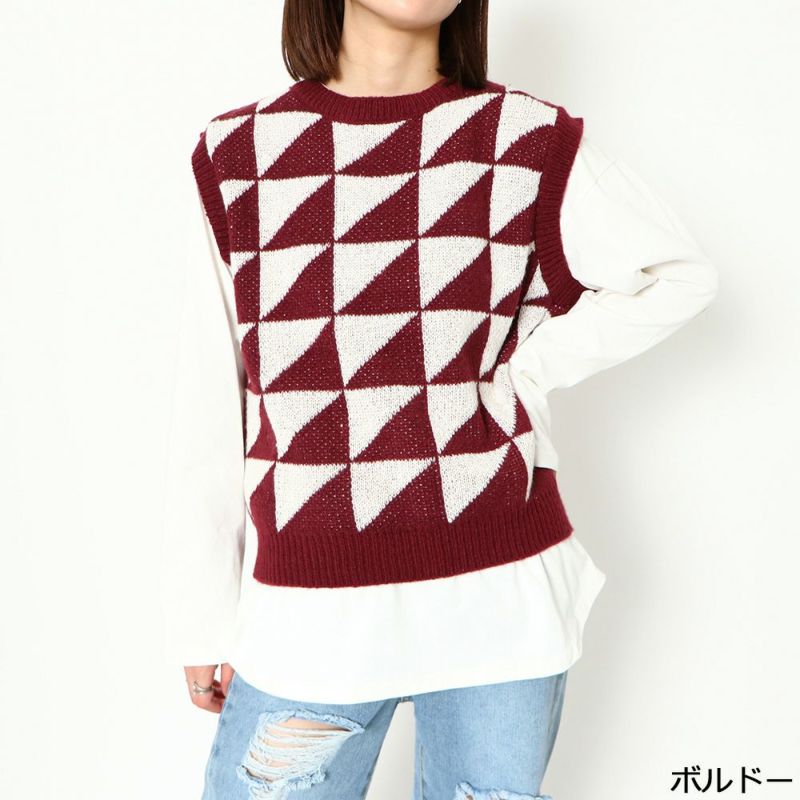 ベスト ニット クルーネック 柄 ニットベスト 冬 秋 夏 2230028
