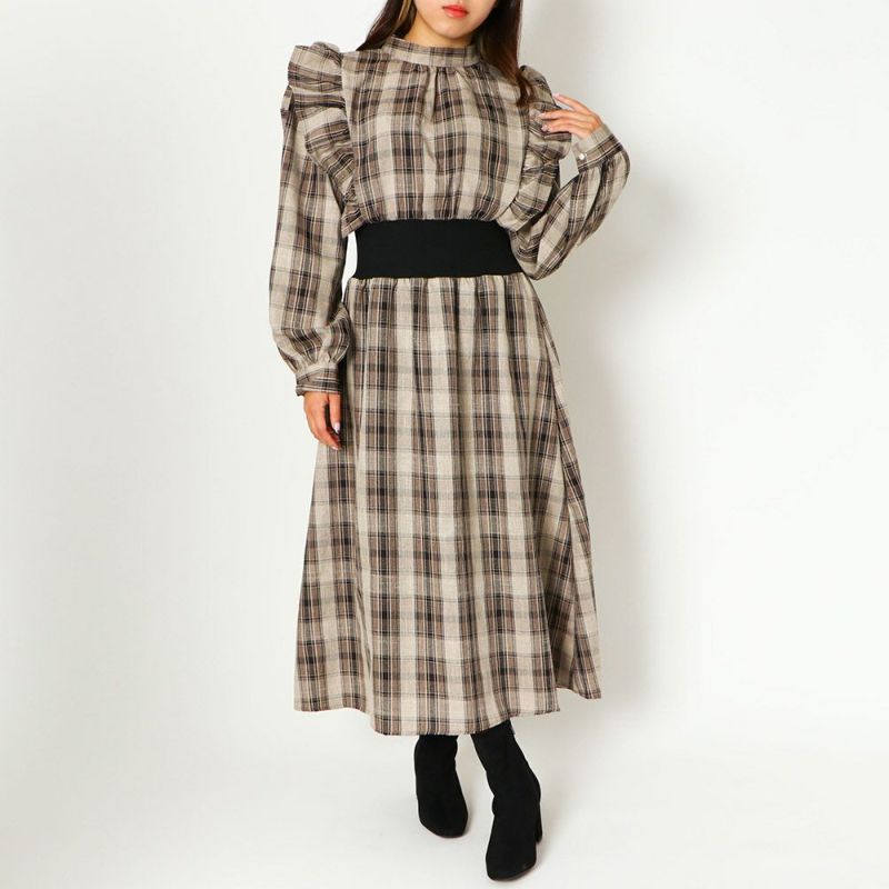 ワンピース オールインワン チェック ウエストリブ リブ 秋 冬 2231634