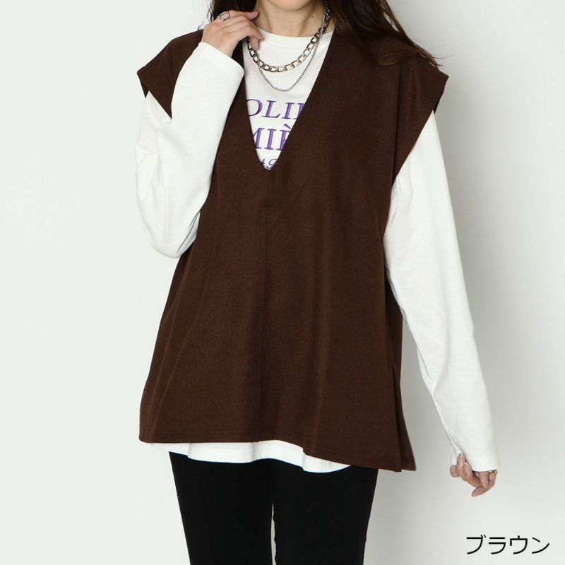 ベスト トップス カルゼ オーバーサイズ ブラック ブラウン 秋 冬 2232600