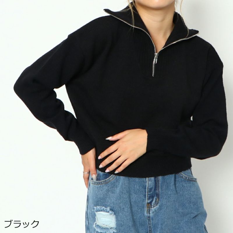 プルオーバー ニット トップス ハーフジップ ショート丈 秋 冬 2232676