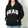 トレンド感のあるサガラ刺しゅう裏起毛ハーフジッププルオーバープルオーバーが登場★裏起毛素材で暖かいのはもちろん肌触りも気持ちいい♪ストリートカジュアルなファッション好きさんにオススメです♪カラーアイテムをインナーで見せると更に今年らしい旬なコーディネートが完成☆