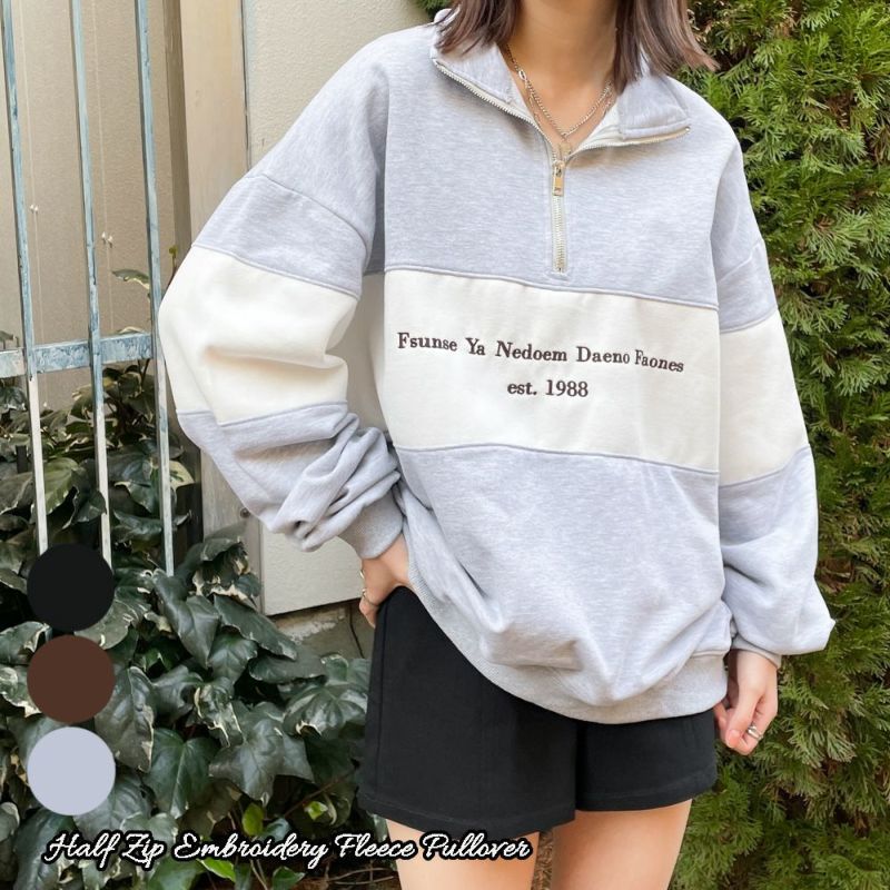 プルオーバー トップス ハーフジップ 刺しゅう 裏毛 春 秋 冬 2310012
