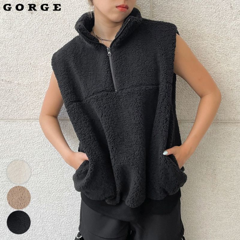 ふんわりとしたあたたかくソフトなボア素材のハーフジップベストが登場★首元までしっかりとカバーするハイネック仕様がポイント♪サイドにはポケット付きで便利な仕様に◎ゆるっと着られるオーバーシルエットでリラックスして着用できるのも魅力です☆
