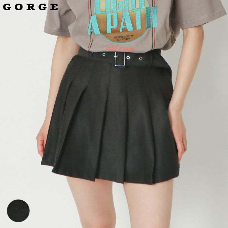 スタイルアップ効果の太ベルト付きミニスカート★フロントがプリーツでバッグがフレアになっているのでふわっと広がる前後で印象の変わるアイテムです。ベルトでウエストマークすれば脚長効果も叶います!裏地がインナーパンツになっているので安心して着こなせます◎