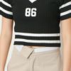 スポーティーライクなナンバーワッペンと2本ラインのデザインが可愛いニットトップス。大きめなリブニット地に衿を付けることで都会的な印象をプラス★ハイウエストボトムと相性バツグンなクロップド丈とVネックでナチュラルな肌見せが叶います。