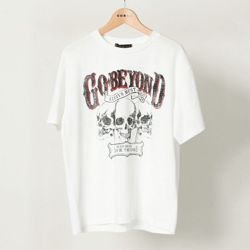フロントにスカルとローズのモチーフを大胆にプリントしたインパクトのあるTシャツ。かすれ感のあるプリントでヴィンテージライクな雰囲気を演出◎ゆったりオーバーシルエットで、簡単にルーズな抜け感を出せるワンアイテム♪