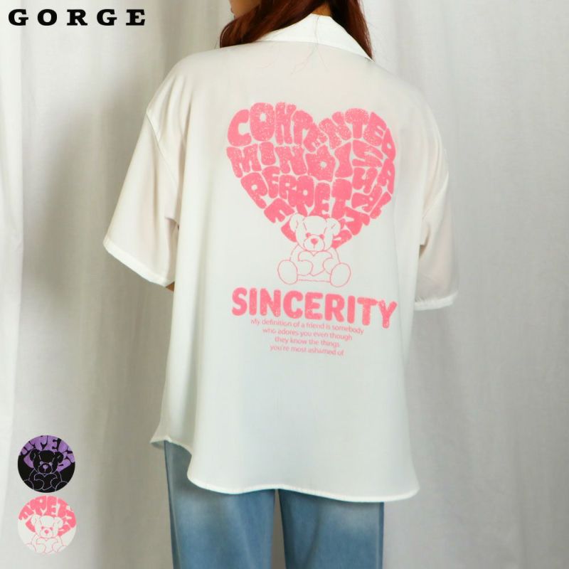 トップス シャツ 春 夏 秋 ハート 開襟シャツ オーバーサイズ バックプリント プチプラ 韓国ファッション 2430311