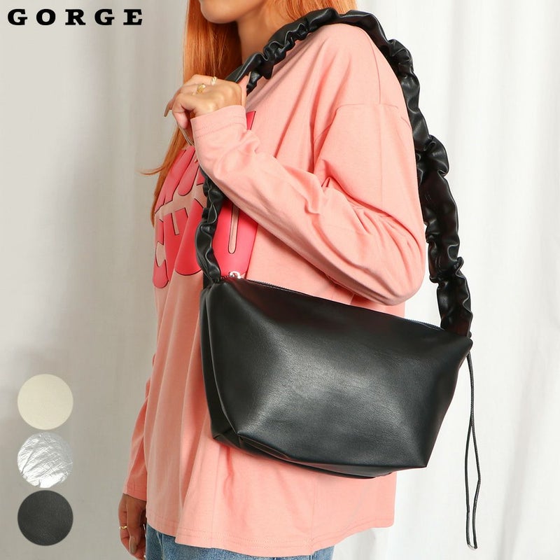 ギャザーハンドルがポイント☆2WAYショルダーバッグ。ショルダーの長さを最長にしてボディバッグとしてはもちろん、ドローコードを引っ張るとショルダーにクシュっとギャザーを寄せることができ、流行りのシャーリングショルダーに早変わり☆500mlのペットボトルが横向きに収納できるサイズ感です◎