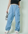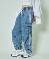 《サイドライン×ルーズシルエット》レディース デニムカーゴパンツ ストリート 春夏秋冬