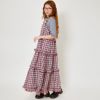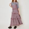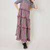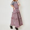 絶妙なバランスで重なるティアードデザインが女性らしいシルエットを演出。柄が全体のアクセントになりつつ、存在感を持たせてくれます。