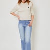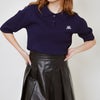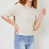 女性らしさを引き立てる半袖襟付き刺しゅうニットプルオーバー