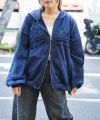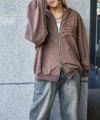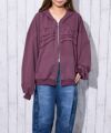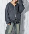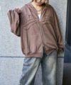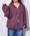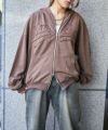 《ロゴ刺繍》ピグメントZIPパーカー/立体デザイン