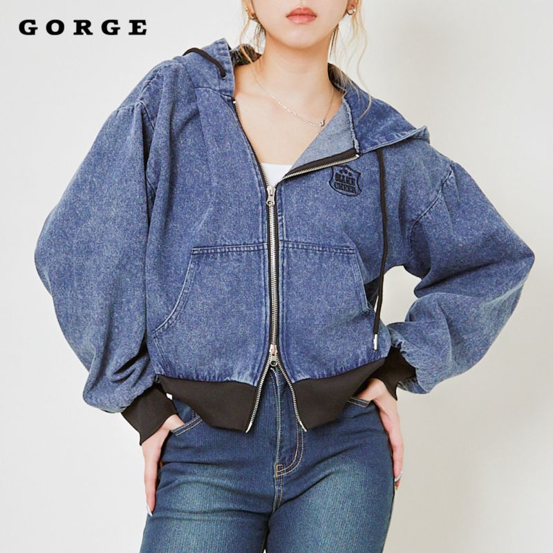デニム素材ならではのヴィンテージ感が魅力のフード付きWzipブルゾン。ポイントはバッグの擦れプリント!コーデにこなれ感をプラスしてくれます。コンパクトな丈感でスタイルアップ効果も期待でき、ワイドシルエットのボトムス合わせがバランス良くオススメ♪ロングシーズンでデイリーに活躍してくれる一着。