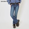 レトロ感とモダンさを兼ね備えたフレアデニムパンツ。膝から広がるフレアシルエットが、足元を美しく見せ、スタイルアップ効果抜群です◎