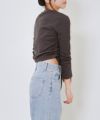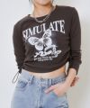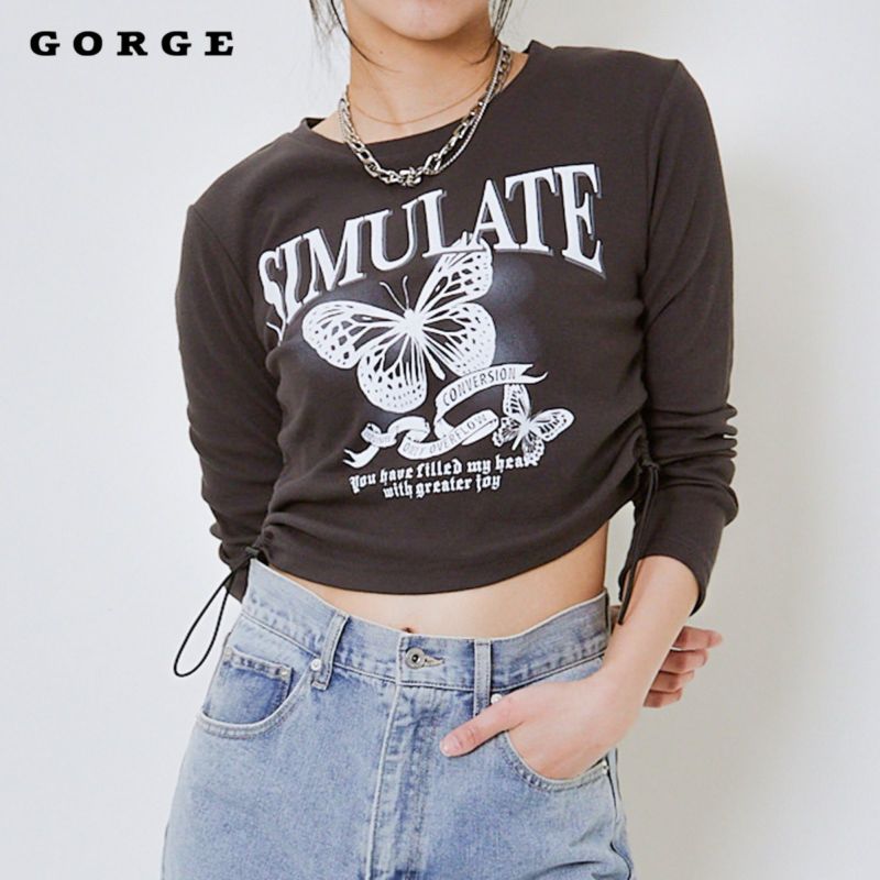 ギャザーを施したテレコ素材のトップスに、バタフライプリントがアクセントとして加わり、シンプルながらも華やかな印象に仕上げました。カジュアルにもフェミニンにも着こなせる一着です◎