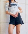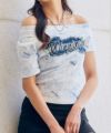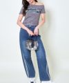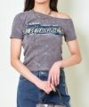 フェミニンさとストリート感を絶妙にミックスした、オフショルダー仕様のデニムワッペン付きTシャツが登場♪