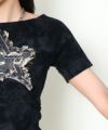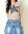 デコルテラインを綺麗に見せるオフショルダー仕様で、女性らしさをさりげなくアピール。胸元の星ワッペンは、重なり合うデニム素材とダメージ加工により立体感と深みがあり、クールさと遊び心がミックスされた印象に♪