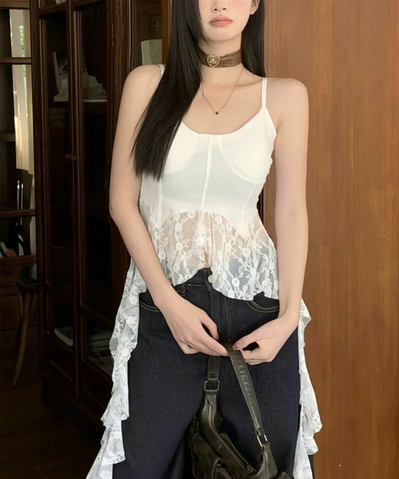 まるでドレスのような美シルエットと、裾に施された繊細なレースディテールが目を惹く1枚。コルセット風のデザインでウエストラインを引き締めつつ、ストラップで華奢見えも叶う、女性らしさたっぷりのアイテムです。大胆ながらも上品にまとまるデザインで、1枚でもレイヤードでも楽しめる着回し力も魅力♪