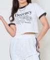 袖や襟の配色デザインがシンプルなTシャツに立体感をプラスし、カジュアルながらも洗練された印象を与えてくれ、タンタケ丈でハイウエストボトムスと相性が良く、スタイルアップ効果も期待できるアイテムです。♪
