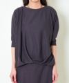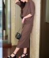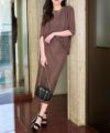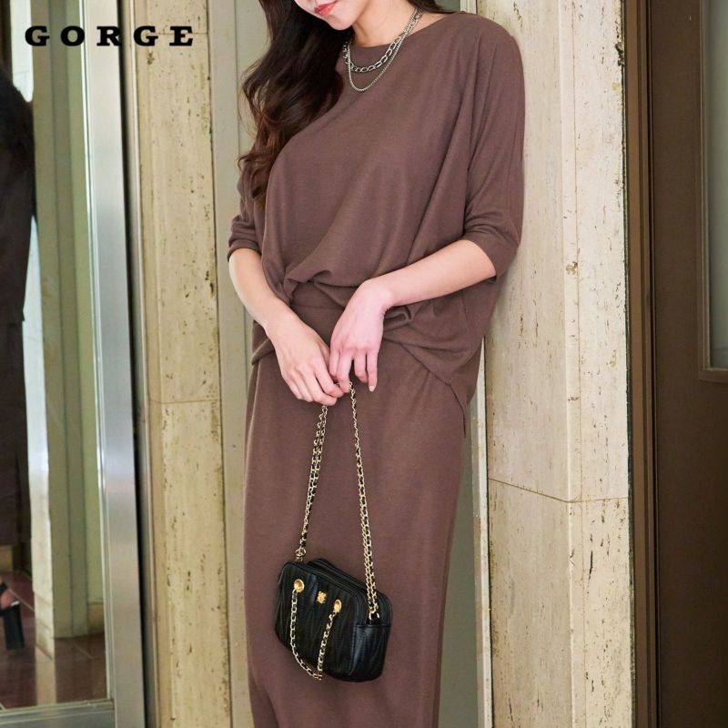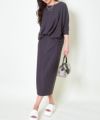 ドルマンスリーブ特有のゆったりとしたシルエットが、気になる部分を自然にカバーしながら、程よいリラックス感を演出。上下ともシンプルなデザインながら、絶妙な落ち感と素材感で大人っぽさを引き立ててくれます。