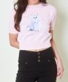キュートな猫モチーフと繊細なオーガンジーリボンの組み合わせが目を惹く、ガーリーさ満点の一着。