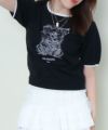 シンプルなのに目を引く!刺繍ブルドッグが主役のニットトップス♪