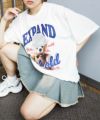 つぶらな瞳のアニマルモチーフが愛らしく、思わず見とれてしまうフロントデザイン。さらに、アニマルが被っているハット部分にラインストーンを散りばめ、動きに合わせてさりげなく輝きをプラス。大きめロゴも立体的な配置でインパクト大!ゆったりとしたサイズ感で、こなれたストリート感も演出できます。