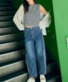胸元のポケットが程よいアクセントになり、カジュアルさの中に大人の余裕を感じさせる仕上がりに。ふんわりとした袖のフォルムが女性らしさを引き立てつつ、リラックス感のある着用感も魅力です。
