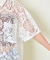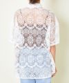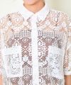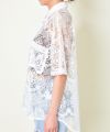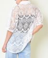全体に施されたレースが華やかで、羽織るだけで存在感たっぷり。フロントに2つのポケットが付き、程よいカジュアル要素もプラス。5分袖なので腕周りをすっきり見せつつ、気になる部分もさりげなくカバーしてくれます。前開きデザインでシャツとしても、羽織りとしても使える万能さがポイント◎