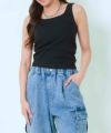 毎日のコーデに重宝するシンプルなタンクトップに、うれしいパットつきタイプが仲間入り。インナーいらずでそのまま着られるから、これからの季節にぴったりのアイテムです。着心地の良さと実用性を兼ね備えた、デイリー使いに最適な一枚♪
