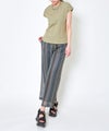 縦のストライプ柄が特徴的で、スタイルをすっきりと見せる効果があります◎