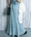 腰まわりはすっきり、裾にかけて広がるマーメイド風のシルエットが女性らしさを引き立ててくれます。ステッチワークもさりげなく効いていて、コーデに程よいアクセントをプラス。