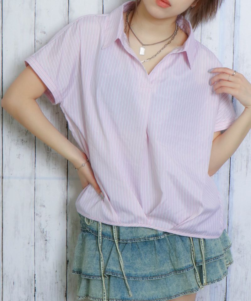 襟付きのきちんと感と、スキッパー仕様のラフさをバランス良くミックス。フロントにはタックが入り、体のラインを拾いすぎず、美しいフォルムを演出。腕をほっそり見せてくれる袖の長さや、軽やかな素材感も魅力のひとつ。落ち着いたカラー展開で、大人っぽく仕上げたい日にぴったりです。