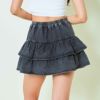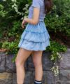 ガーリーな揺れ感が可愛い♪ ティアードデザインのデニムミニスカパン