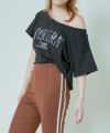 フロントに大きく入った存在感あるロゴデザインが目を引く、ストリート感漂うTシャツです。ワンショルダー風のディテールがさりげない肌見せを叶え、程よく抜け感のあるスタイリングに仕上げてくれます。ロゴの一部にメイサイ柄を施した貼り付けデザインが、ボディにアクセントをプラスし、シンプルながらもコーデの主役になるアイテムに♪
