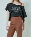 デコルテ周りが美しく見え、ゆるめのボックスシルエットが絶妙なバランス。ボディ中央のロゴが目線を引き締め、全体をすっきりと見せてくれます。ベーシックな中にエッジを効かせた一枚に仕上がっています。