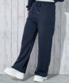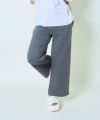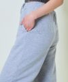 ゆるっとしたワイドシルエットと程よい厚みの裏毛素材で、リラックス感と動きやすさを両立。ウエストはゴム仕様で、着脱もらくちん◎バックのロゴデザインがポイントになっており、後ろ姿にこなれ感を演出してくれます。
