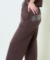 バックスタイルに大胆に施されたラインストーンロゴが印象的な裏毛パンツ。キラッと光るストーンが、カジュアルなスウェット素材に華やかさをプラスし、ストリート感のある着こなしを楽しめます。フロントには装飾がなく、シンプルなルックスでコーデに取り入れやすいのも嬉しいポイント♪
