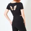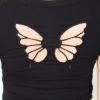 背中に蝶の羽が広がるようなカットアウトが施されたデザインが適度な肌見せができることで抜け感を演出してくれます☆ 柔らかいコットン生地を選ぶことで、動きやすさと着心地を両立できます。