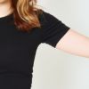 ハイウエストのデニムやフレアスカートと相性が良く、トレンドのY2Kファッションともマッチします。アクセサリーやレイヤードアイテム次第でさまざまな着こなしが可能なため、幅広いコーディネートに取り入れやすいのも魅力です。
