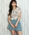 華やかでフェミニンなムードが漂う、花柄シャーリング半袖ブラウス♪